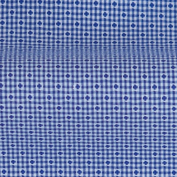 Tissu 100% coton 70/1 95 gr motifs croix et carreaux bleus et blancs, haut de gamme, soyeux, très agréable au toucher, se porte avec un costume pour un style chic et classique, possibilité de création en chemisette pour l'été.