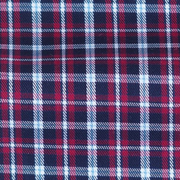 Tissu chemise 100% coton 50/1 113 gr grands carreaux marines et rouges, rayures blanches, doux et confortable, se porte avec un jeans pour un style branché et décontracté.