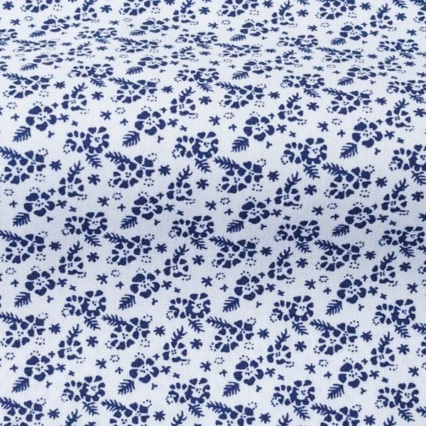 Tissu chemise 100% coton 50/1 110 gr motifs fleurs bleu, fashion, doux, léger et soyeux, idéale pour la saison du printemps, se porte avec un costume ou un jeans